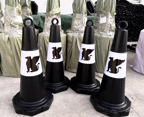 Wholesaler 30 Inch 750mm Reflective PE Plastic Black Road Cone with Black Base